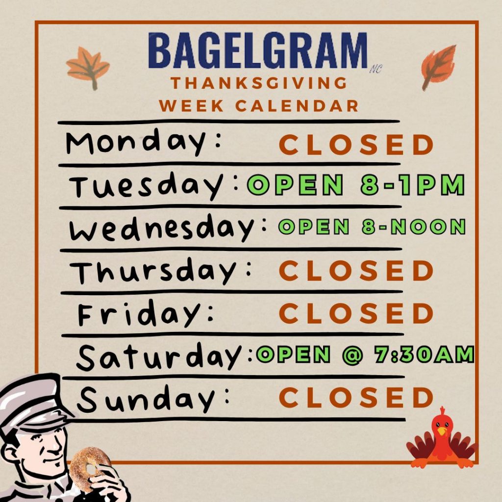 To view all of your online ordering option head to BagelgramNC.com and enter your Zip Code.
